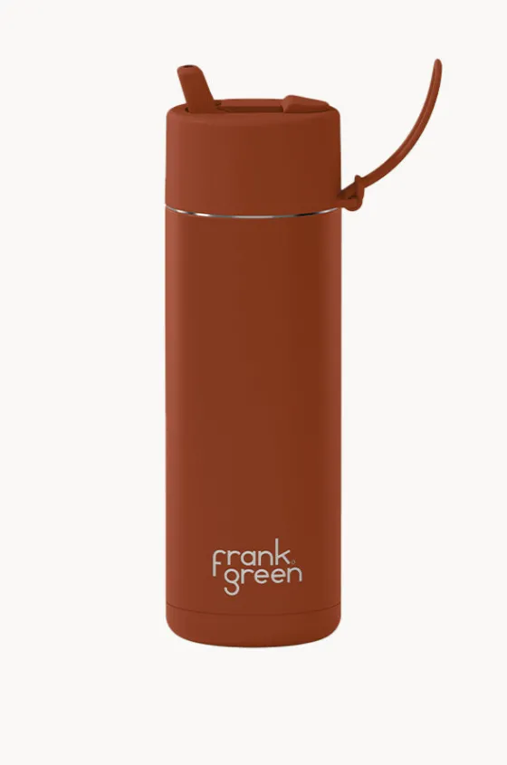 Frank Green Ceramic Drink Bottle 595ml in Toffee offers a straw lid, carry handle, triple wall vacuum insulated design, and is available in a 595ml capacity.