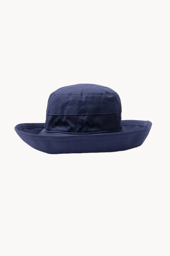 Cancer Council Essential Traveller Hat in Navy offers a roll up brim, UPF 50+ sun protection, internal adjustable drawstring, packable and washable.
