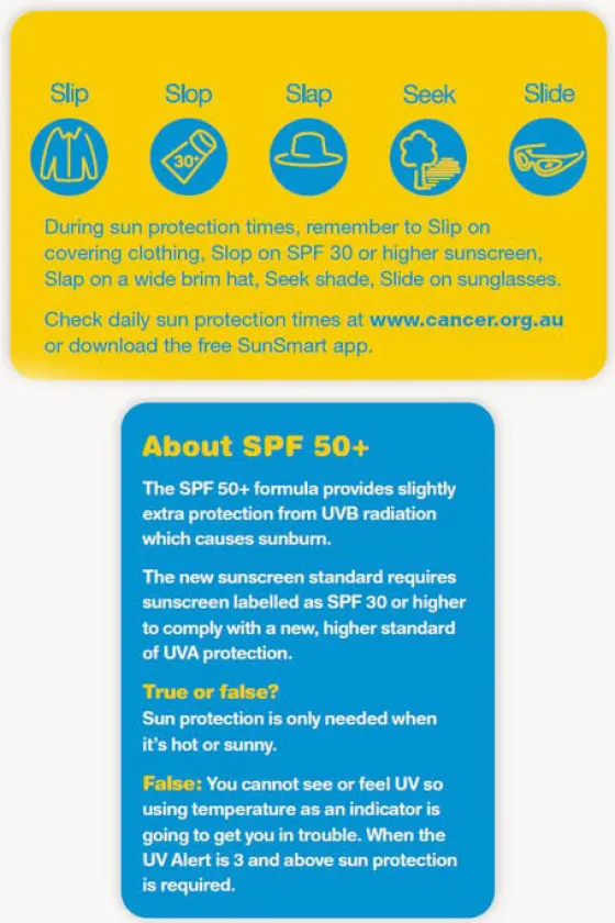 Instructions for use: Apply sunscreen liberally and evenly to dry skin at least 15-20 minutes before going out into the sun. The Cancer Council recommends all sunscreens be re-applied every 2 hours or after swimming, exercising and towel drying.