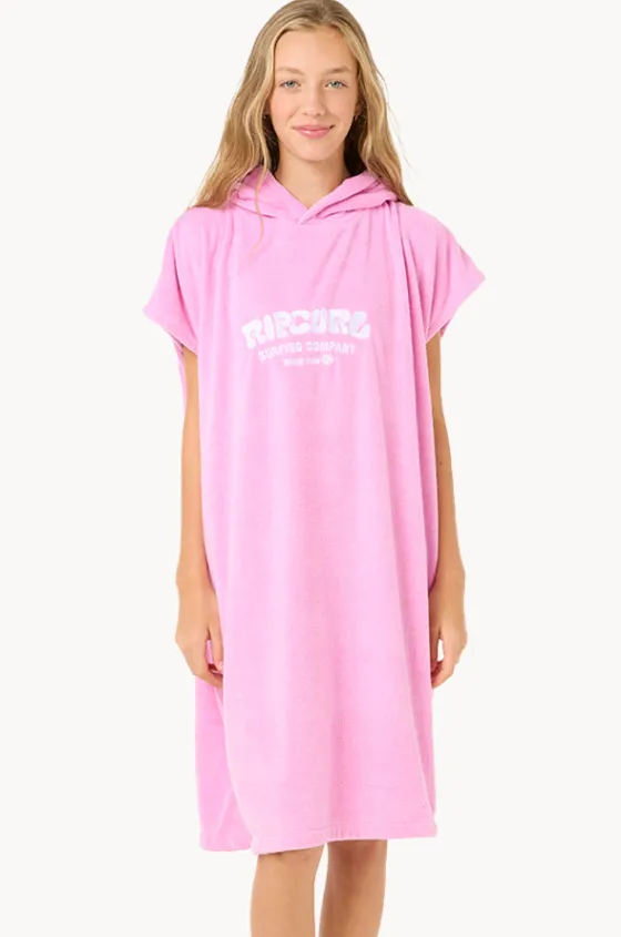 Rip Curl Girls Classic Surf Hooded Towel in Pink features a hood, Rip Curl embroidered branding, side splits, and is made from quick-drying Microfibre.