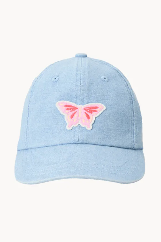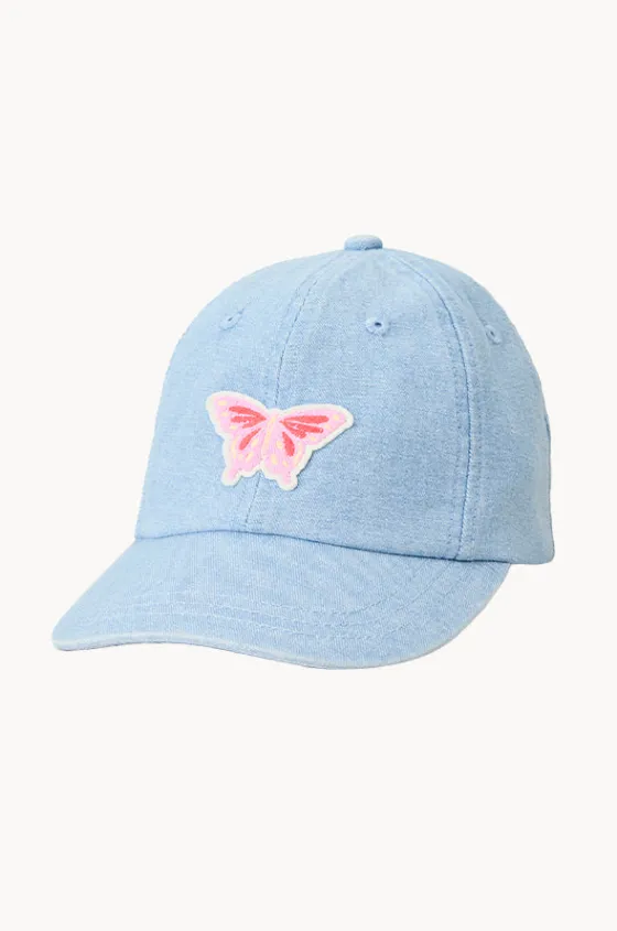 Rip Curl Girls Mixed 6 Panel Cap in Denim features embroidered front patch and eyelets, elasticated stretch back, curved peak, available in O/S.