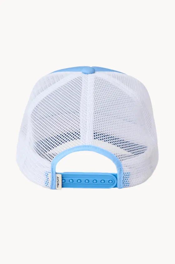 Rip Curl Girls Mixed Revival Trucker Cap in Sky Blue features a curved peak, mesh panels, adjustable back closure, and is available in O/S.