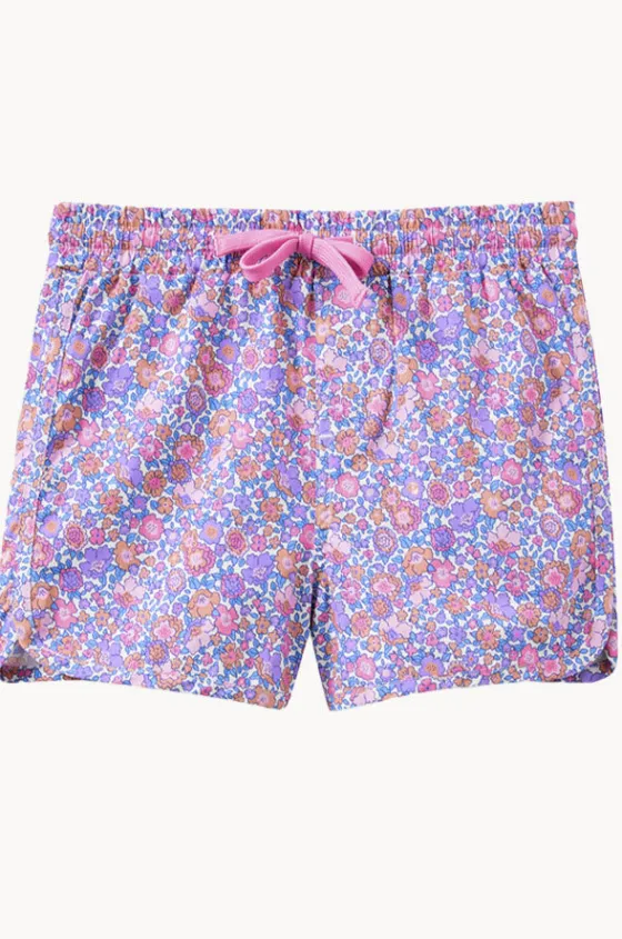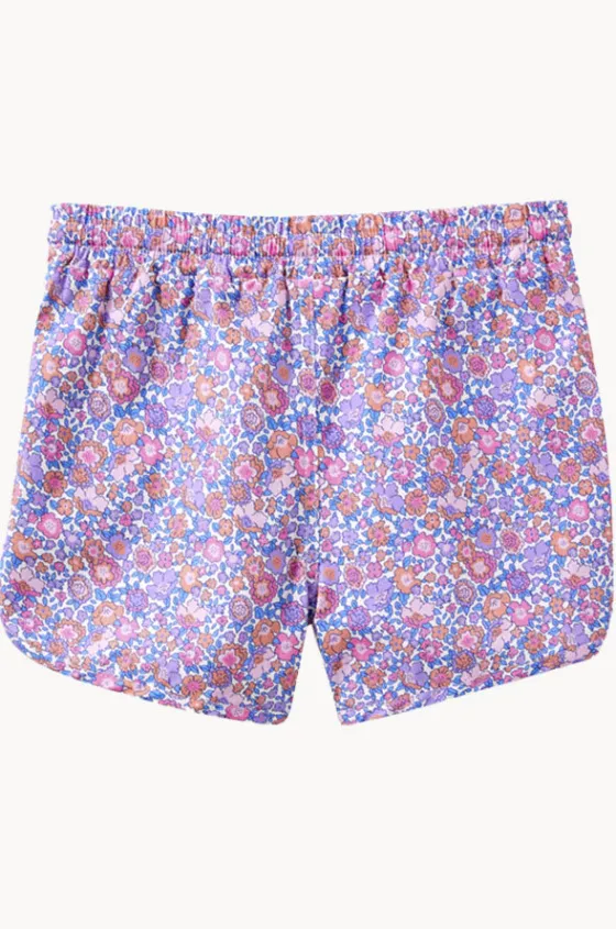 Milky Girls Pretty Posy Boardshort in Pink/Blue features an elasticated waistband, drawcord, mock fly stitching, regular fit, and is available in sizes 2-7.