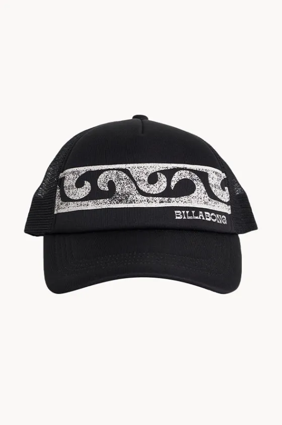 Billabong Girls Wave Fade Trucker Cap in Off Black features a curved peak, breathable mesh panelling, adjustable back, and is available in O/S.