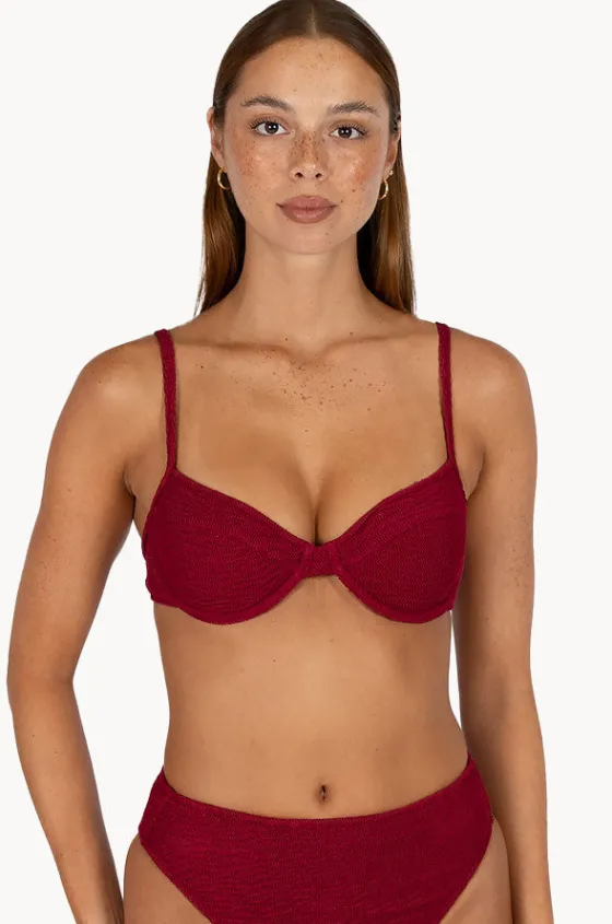 Baku Ibiza B/C Cup Underwire Bra in Scarlet features underwire, removable cups, adjustable straps, back clip, and is best suited to B-C cup sizes.