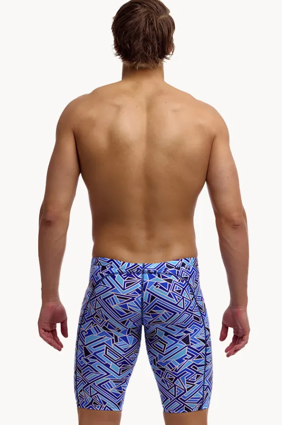 Funky Trunks Mens Blue Bits Jammer in Blue offers an elasticated waistband, drawcord, quick drying, chlorine resistant, is available in sizes 30-38.