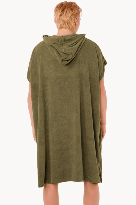 Rip Curl Mens Brand Hooded Towel in Olive features a quick drying fabric, hood, short sleeves, side splits and is available in O/S.