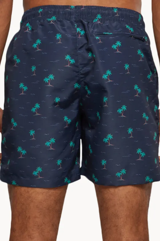 Urban Classics Mens Island Swim Short in Navy features an elasticated waistband, drawcord, pockets, mesh lining, and is available in sizes S-5XL.