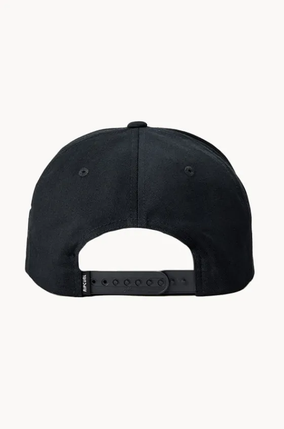 Rip Curl Mens Stapler SB Cap in Black features an embroidered front patch, high profile, structured, adjustable back, and is available in O/S.