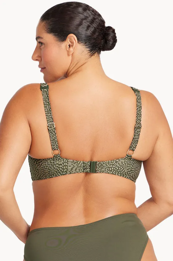 Artesands Onda Perspective Botticelli Bra in Olive features a crop design, soft cups, adjustable straps with strap clip, and is best suited to C-DD cup sizes.