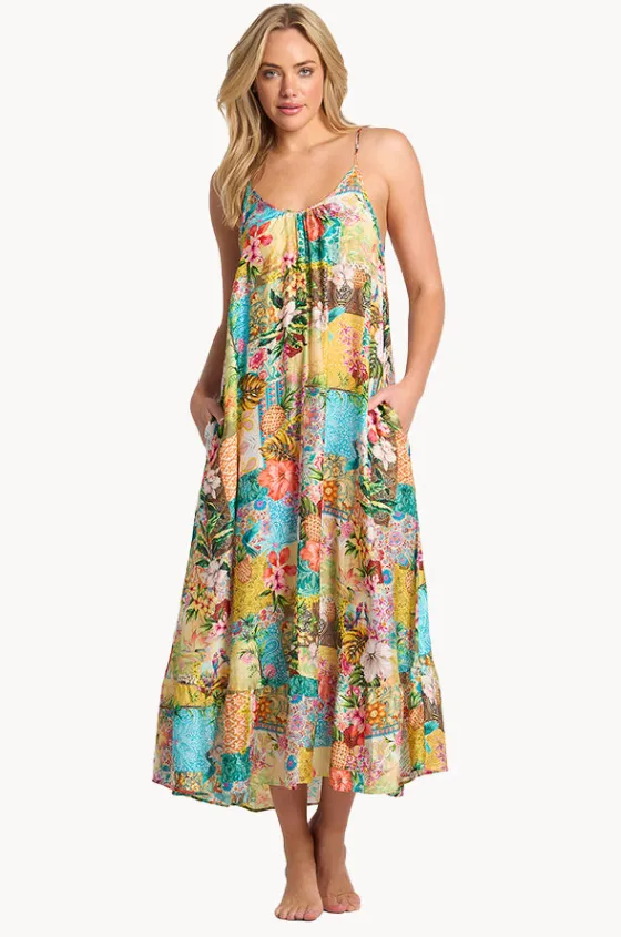 Sunseeker Papaya Scoop Maxi Dress in Multi features a scoop neckline, adjustable thin straps, inseam side pockets, maxi length, and is available in sizes XS-L.