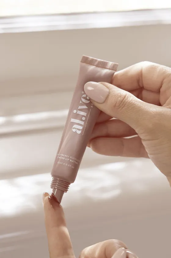 Al.ive Body Raspberry Blossom & Juniper Hand & Lip Gift Set includes 80ml hand cream, and 15ml lip balm encased in a pouch.