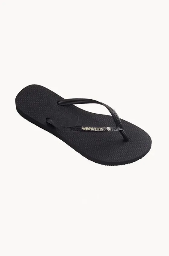 Havaianas Slim Metal Logo Crystal Thong with;