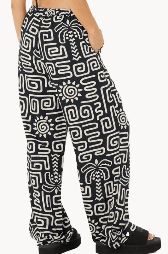 Rip Curl Sunset Luau Wide Leg Pant in Black/White features an elasticated waistband, drawcord, relaxed full length, and is available in sizes XS-XL.