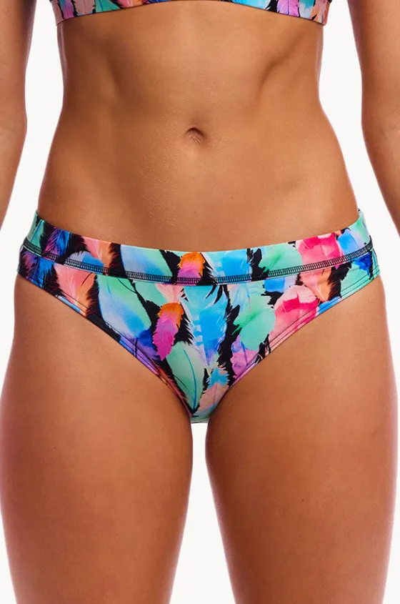 Funkita Tickle Torture Sports Brief in Black/Multi offers an elastic waist, internal drawcord, medium coverage, chlorine resistant, available in sizes 8-14..