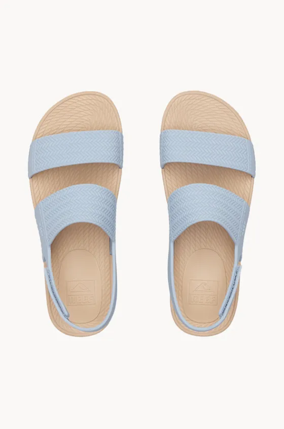 Reef Water Vista Sandal in Dusty Blue offers a two-bar strap design, arch support, water-friendly, lightweight moulded footbed, and is available in sizes 6-10.