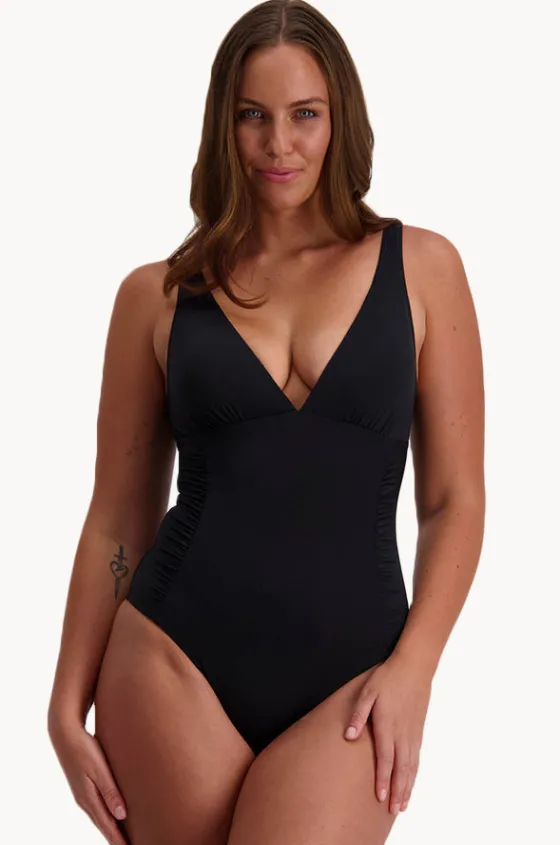 Contours Side Ruched Plunge One Piece|Moontide Best