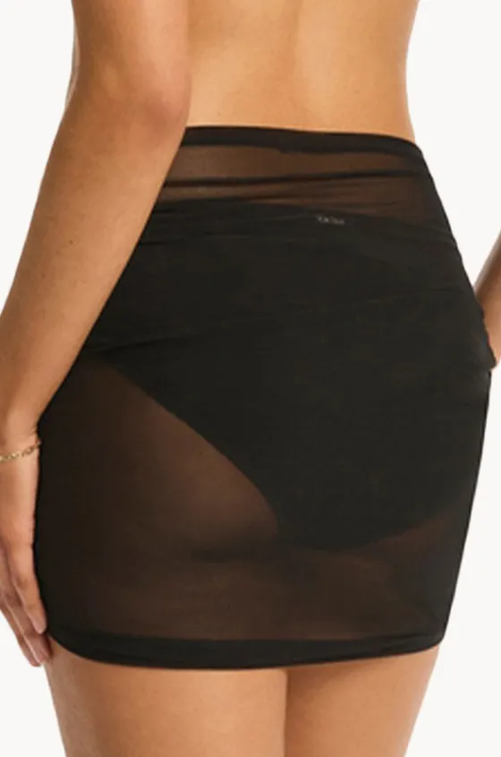 Sea Level Day Club Drawstring Mini Mesh Skirt with;