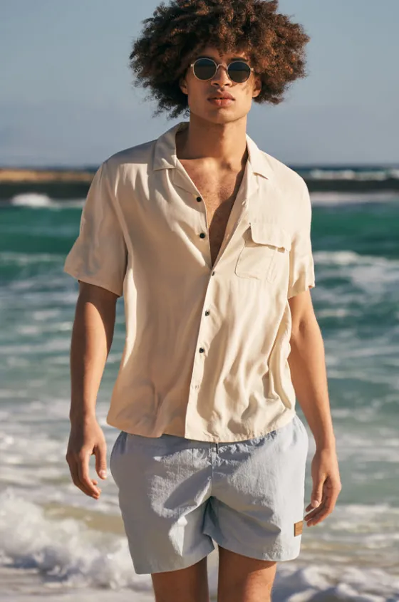 Urban Classics Mens Block Swim Short in Blue features a 5″ inseam, quick-dry nylon, mesh lining, drawstring waist & side pockets.