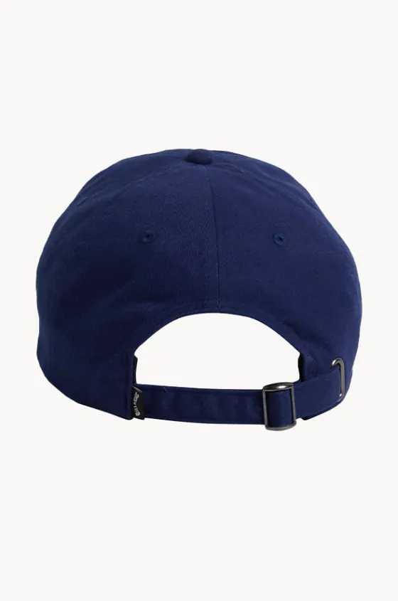 Billabong Mens Peyote Dad Cap in Blue features a baseball design, curved peak, adjustable slider at back, embroidered branding detail, and is available in O/S.