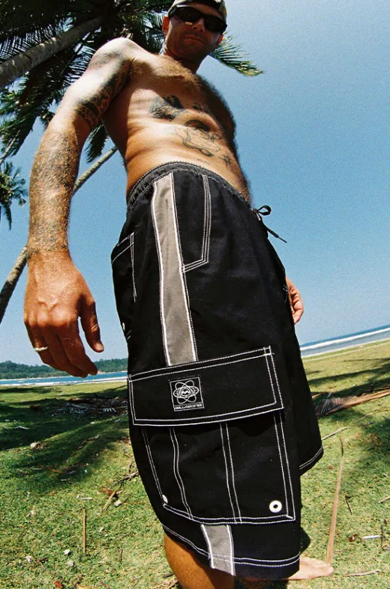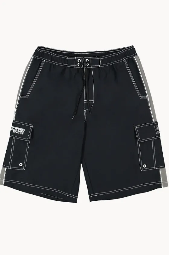 Billabong Mens Throw On 3.0 Boardshort in Black features an elasticated waistband, drawcord, 22 inch length, cargo pockets, and is available in sizes S-XL.