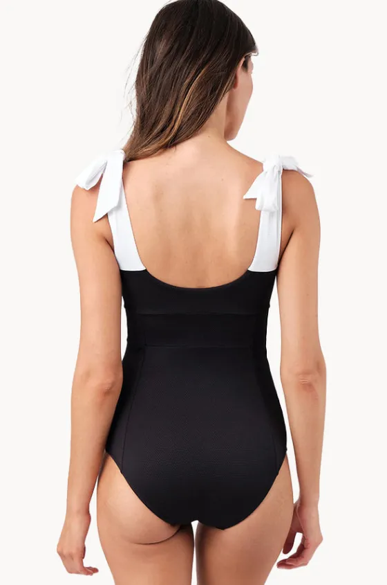 Une Piece Monochrome Texture Classic Square Neck One Piece in Black/White offers removable bows on straps, fixed straps, and is best suited to B-D cup sizes.