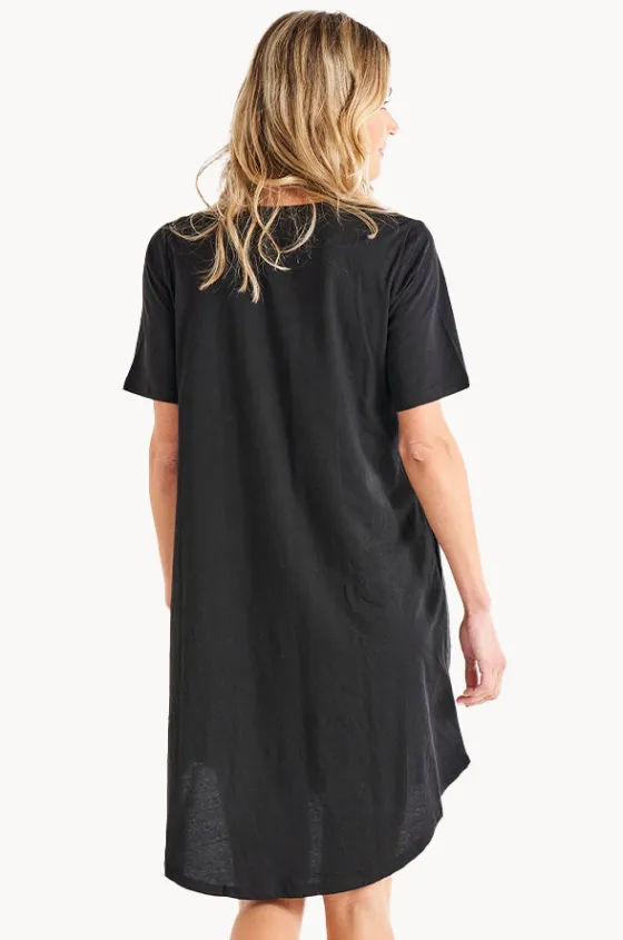 The easiest dress to throw on and you are out the door. The loose fitting Nyree Dress is the ultimate wardrobe solution. Featuring scoop neck, elongated sleeve length and side seam pockets.