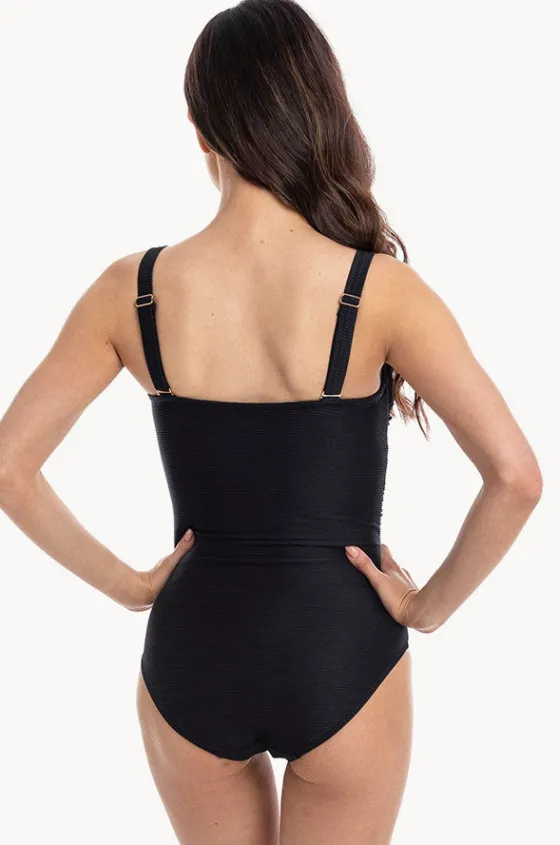 Togs Plain Textured Twist Bandeau One Piece in Black features optional straps, mastectomy suitable, powermesh, fully lined, and is best suited to B-D cup sizes.