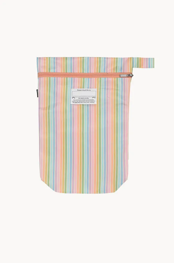 Bedhead Rainbow Wet Bag in Multi features a leak-free bag, carry handle, secure zip closure, and has a return-to label.