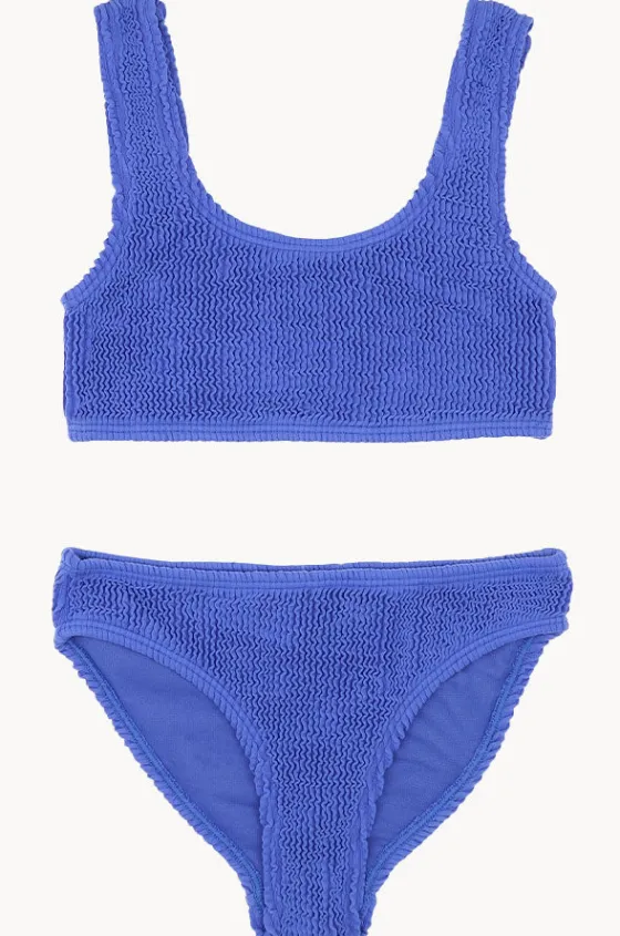 Minihaha Teen Girls Coco Crop Set in Royal Blue features a crop top, stretch crinkle fabric, hipster pant, fully lined, and is available in sizes 8-16.