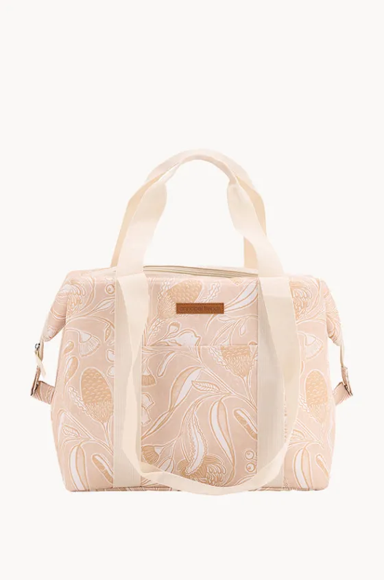 Annabel Trends Trailing Natives Picnic Box Cooler Bag in Tan offers a top zip, side clips, dual handles, and insulated lining to ensure contents stay cool.