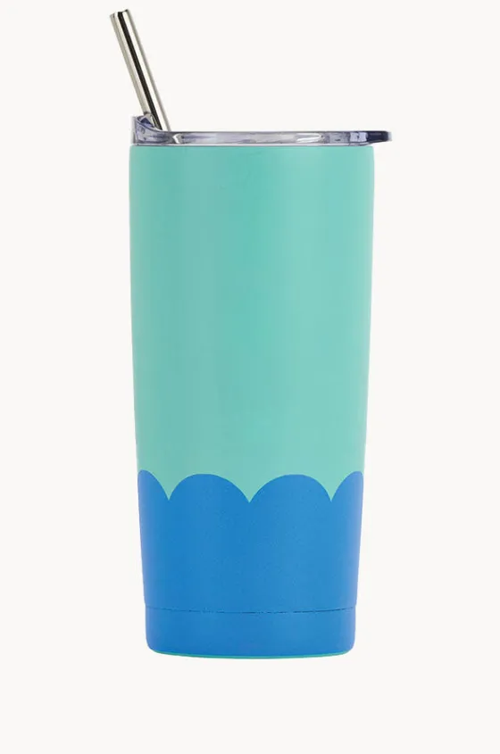 Annabel Trends Wave Stainless Smoothie Cup 500ml in Blue/Aqua features a double-walled body to keep drinks cool, a stainless steel straw, and secure lid.