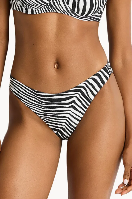 Sea Level Zebralis Sporty Mid Pant in Black features a mid rise waist, raised legline, low-medium coverage, powermesh, and is available in sizes 8-14.